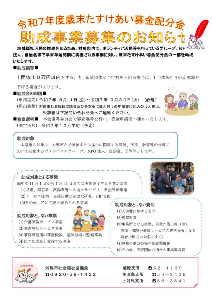 提出書類:対馬市社会福祉協議会及び各支所に備え付けの申請書に記入の上提出。